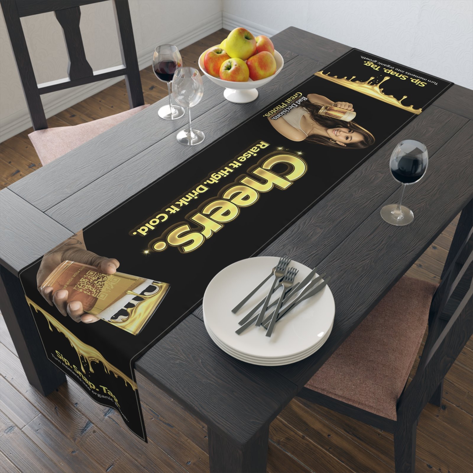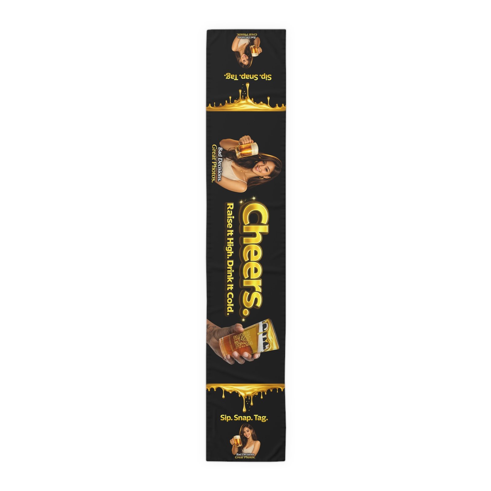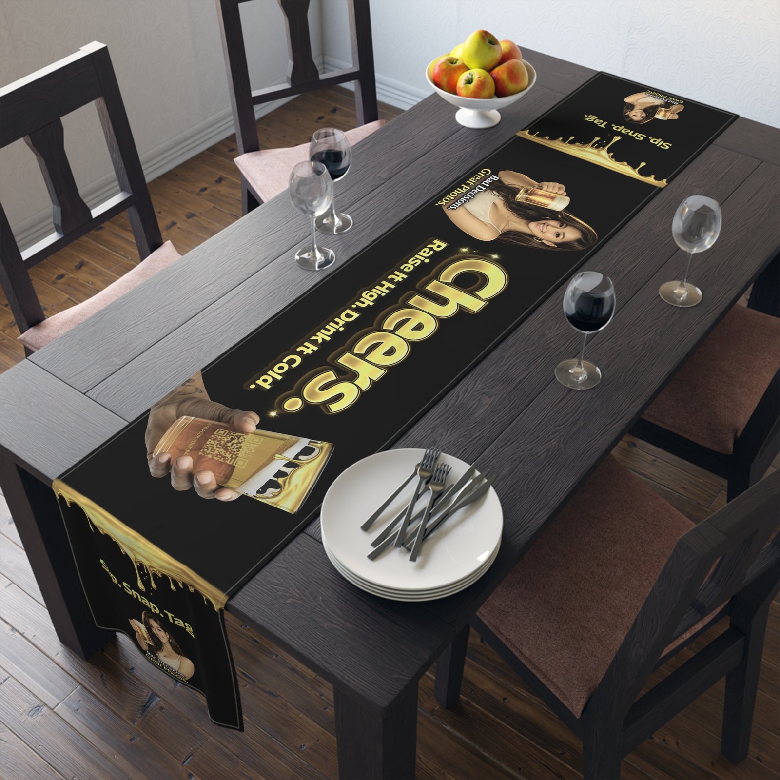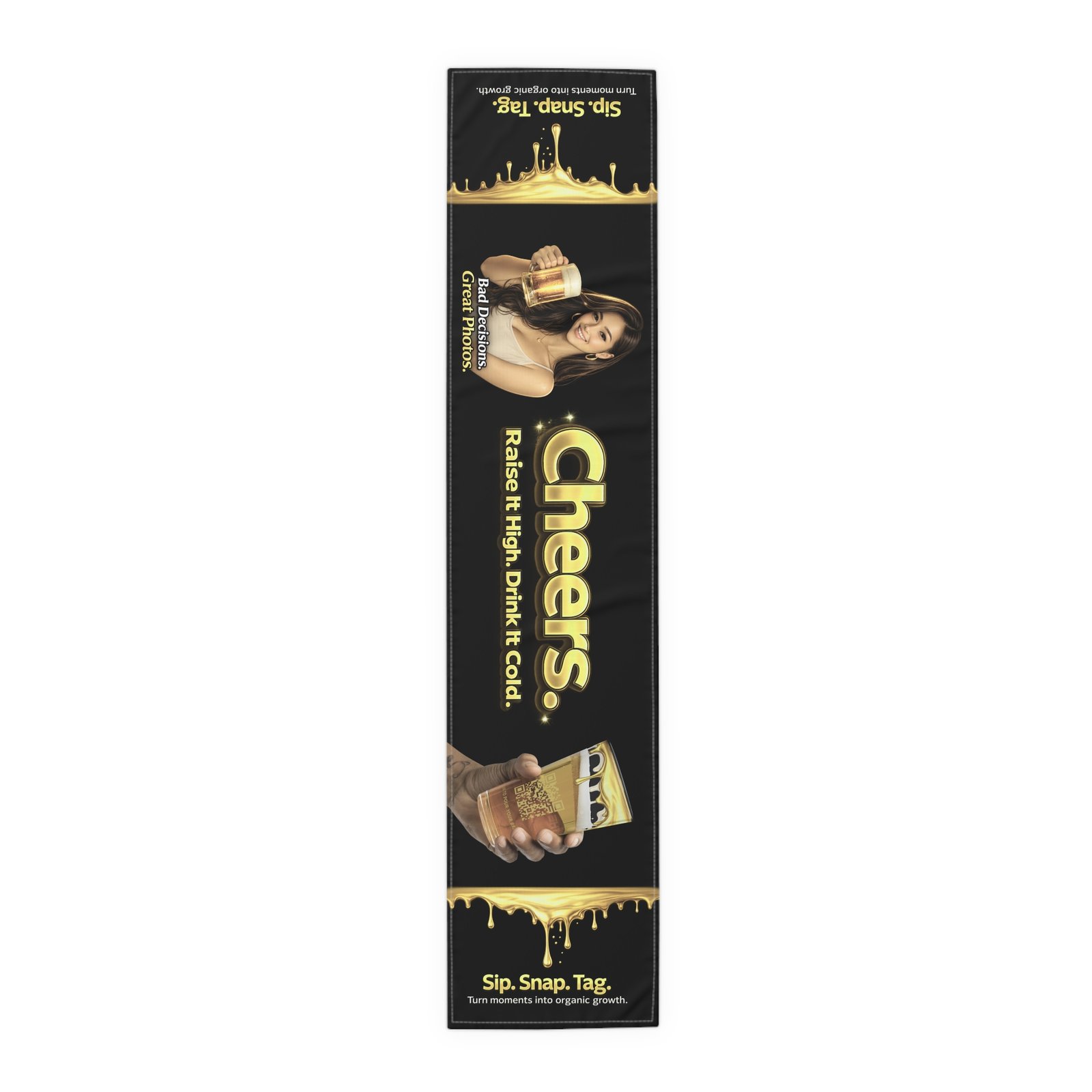 The Cheers — Raise It High. Drink It Cold. table runner brings bold bar energy straight to the centre of the table.