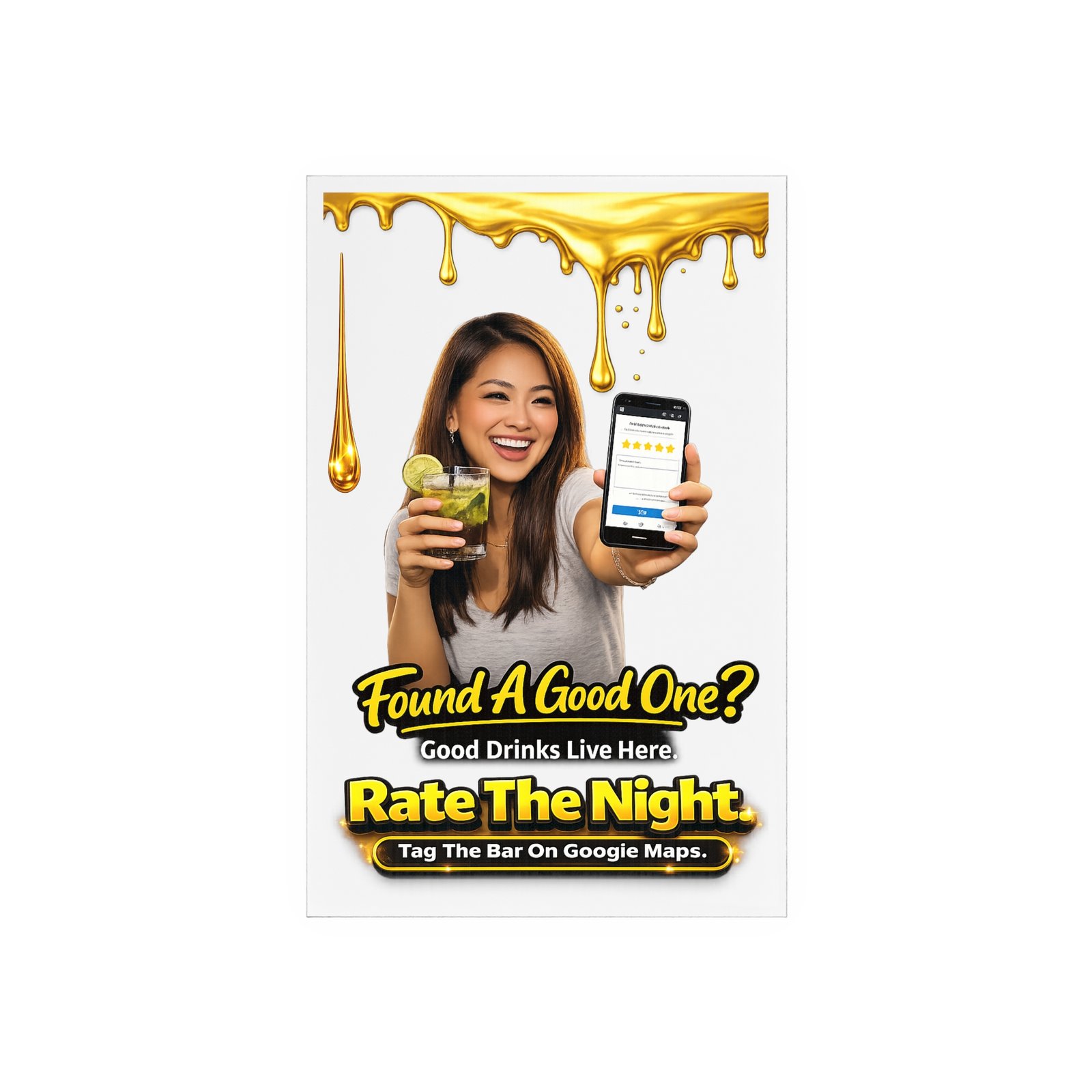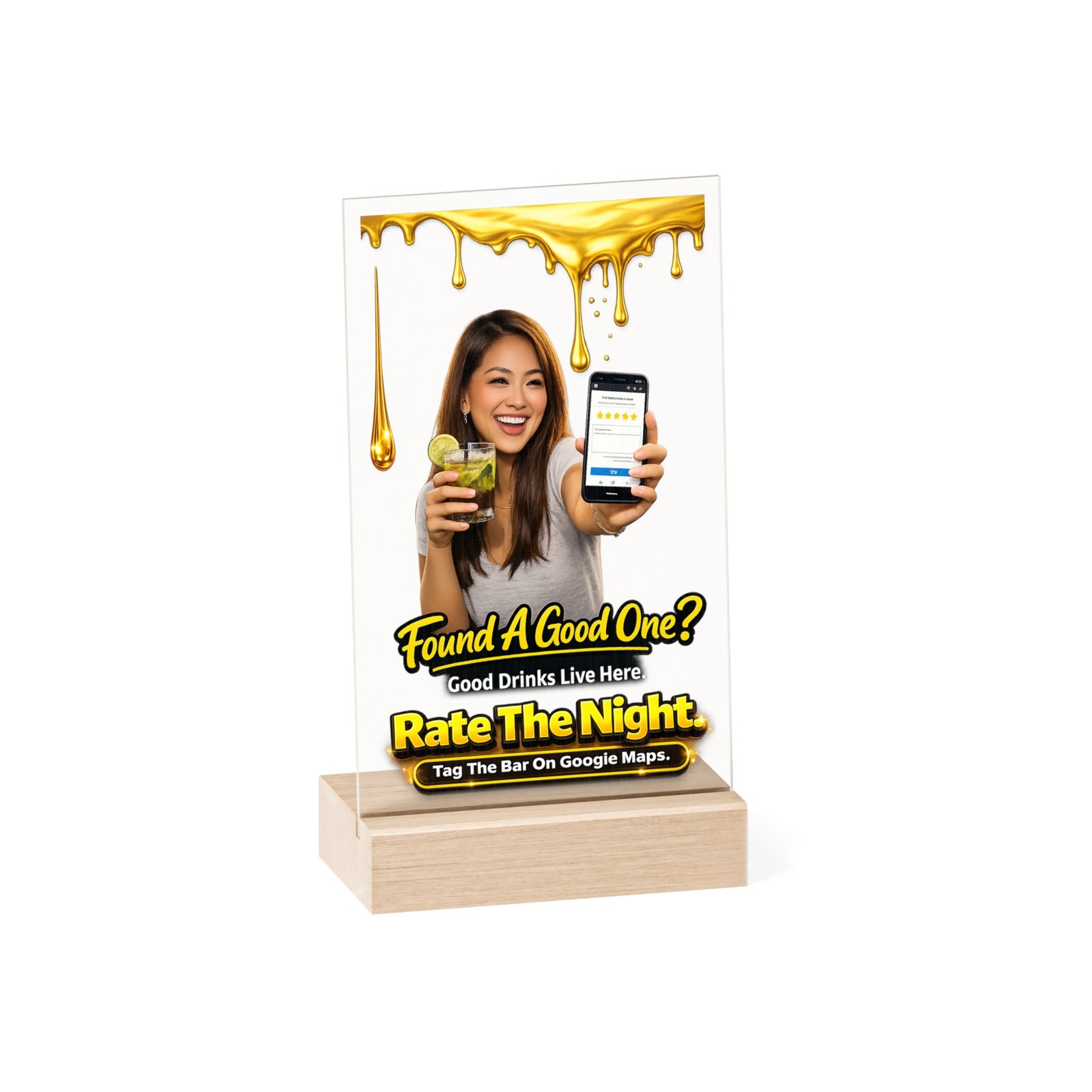 The Found A Good One? — Rate The Night acrylic sign is designed to turn a simple tabletop display into a high-impact review trigger.