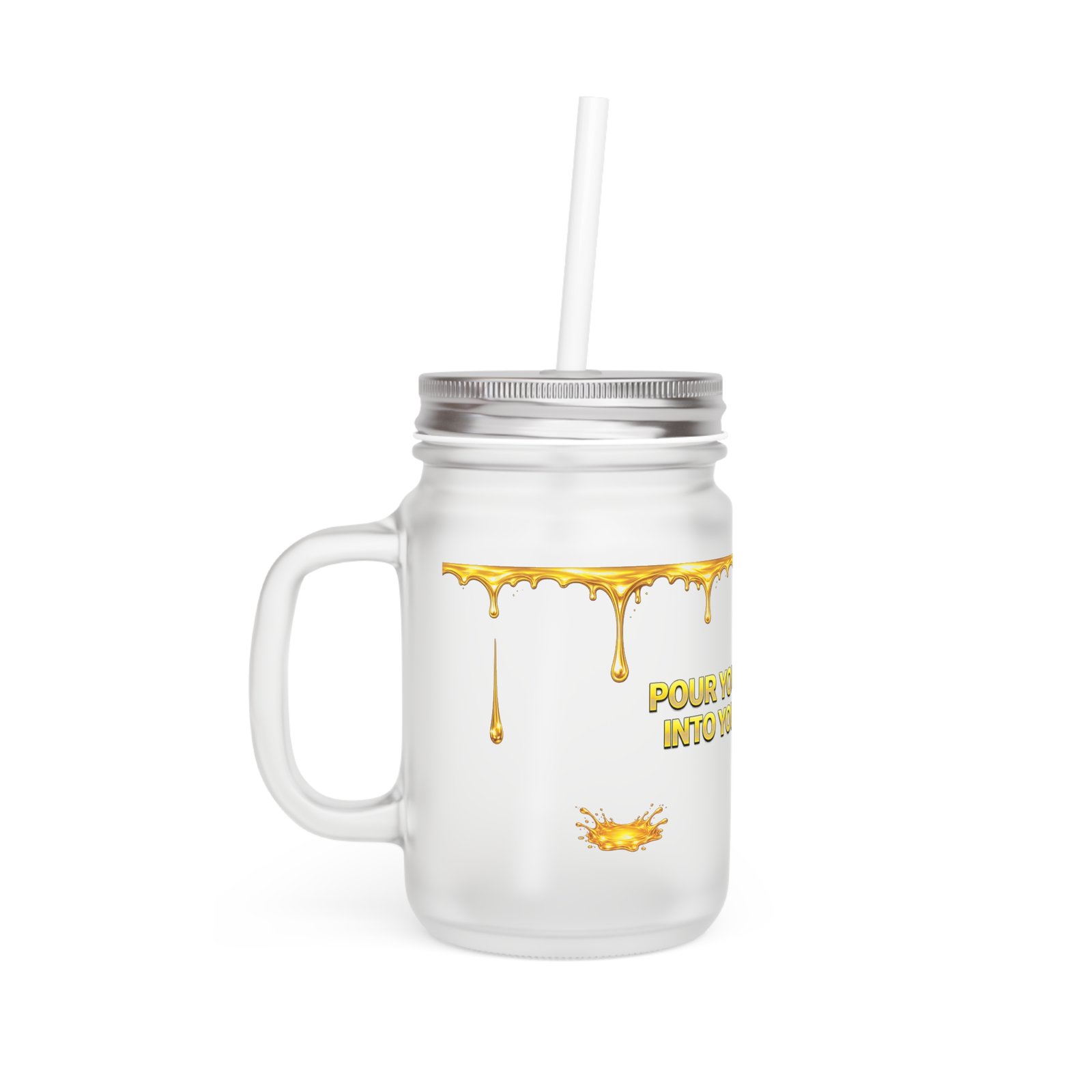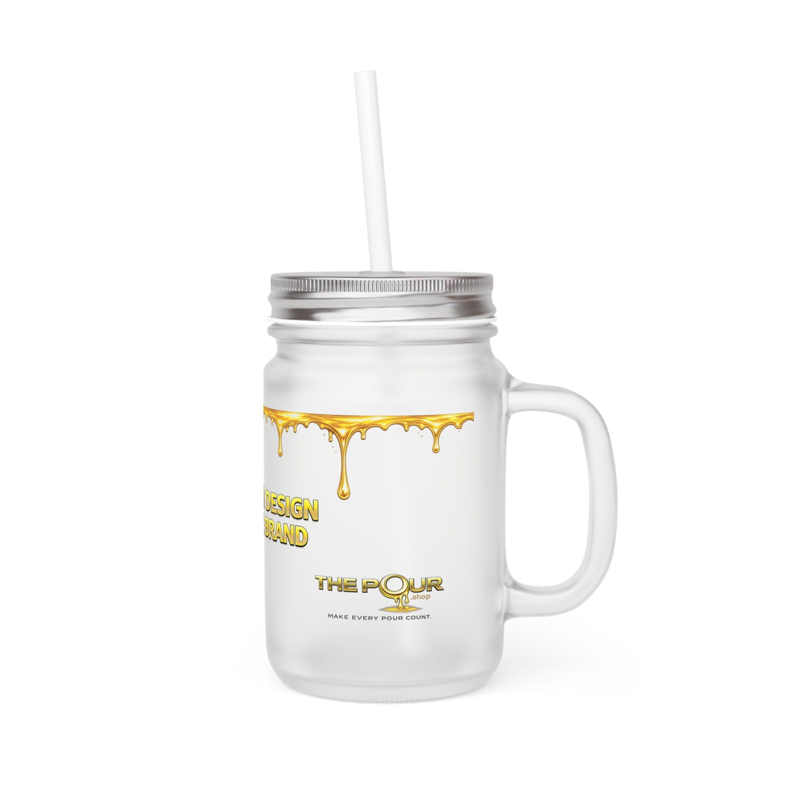 The The Pour Mason Jar Tumbler blends relaxed rustic style with the bold identity of The Pour Shop.