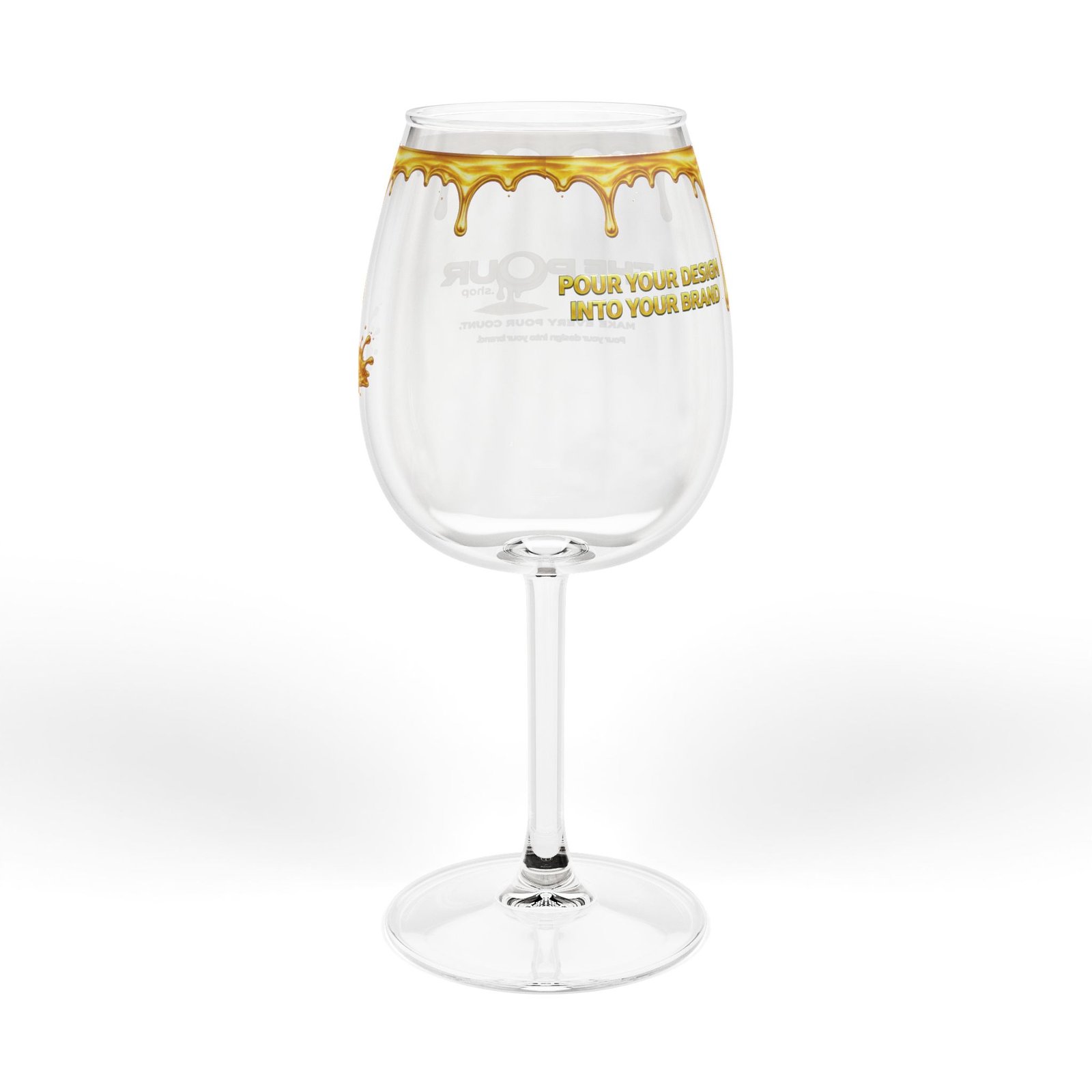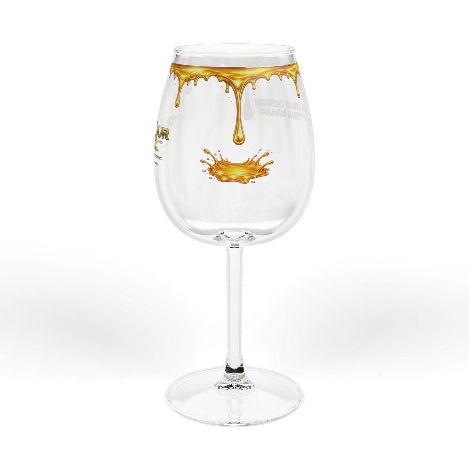 The clear glass body with signature gold drip Pour design provides a clean, modern appearance while creating the visual effect of liquid gold flowing from the rim.